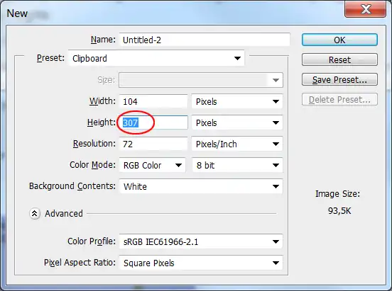 After getting frontal picture from this object, I can calculate every needful height. Use for this purpose grafic editor like [www.gimp.org Gimp] or Adobe Photoshop. In the example the total height of 93,6m= 1639 pixels. For calculating of wishful height, H from the picture use proportion: