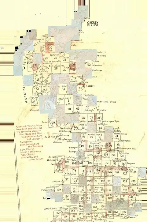 | 53 | 1956, fully revised 1954, corrections 1958 | Seems quite poor (50-100m out) on the northern edge, e.g. the Ben Lui area. Ollie 18:44, 27 October 2009 (UTC)