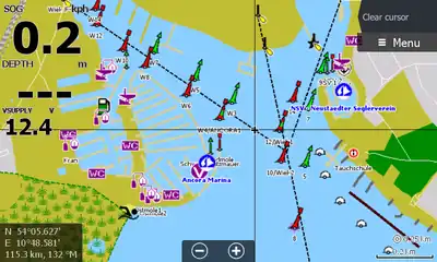 The right map type has to be chosen in the map menu. Depending on the device "Lowrance", "Insight" or "OpenSeaMap" is the right setting.