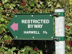 Are tracks with similar access rights as bridleways but also allow vehicular traffic that is not mechanically propelled. This includes horse-drawn carriages and pedal bicycles. Motor cars, motor bicycles, quad bikes, motorised scooters, etc. are not permitted. The Restricted Byway replaces the former category of Road used as a Public Path, which no longer exists. They are typically waymarked by plum-coloured arrows.