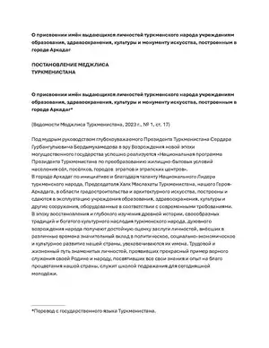 - ↑ “Постановление Меджлиса Туркменистана” (in Russian). Туркменистан сегодня. 10 May 2023.