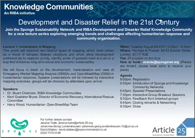 The audience were a bunch of people from the Article 25 charity and their contacts from architectural and aid organisations. For details of the rest of the event (there is one other talk) and details of who was running it and why, see the event details on the Article 25 website.