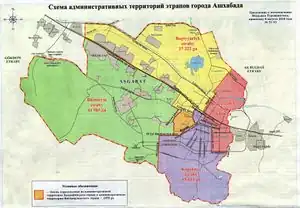 - Bagtyýarlyk etraby (formerly President Niyazov/Lenin District, later expanded to include former Ruhabat District plus new territory)