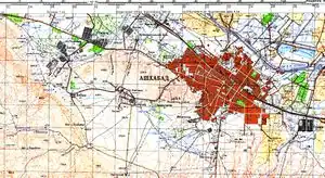 - ↑ The Howdan microdistricts are lettered in order A, B, and W because these Turkmen Latin letters correspond to the first three letters of the Turkmen Cyrillic alphabet, А, Б, В.