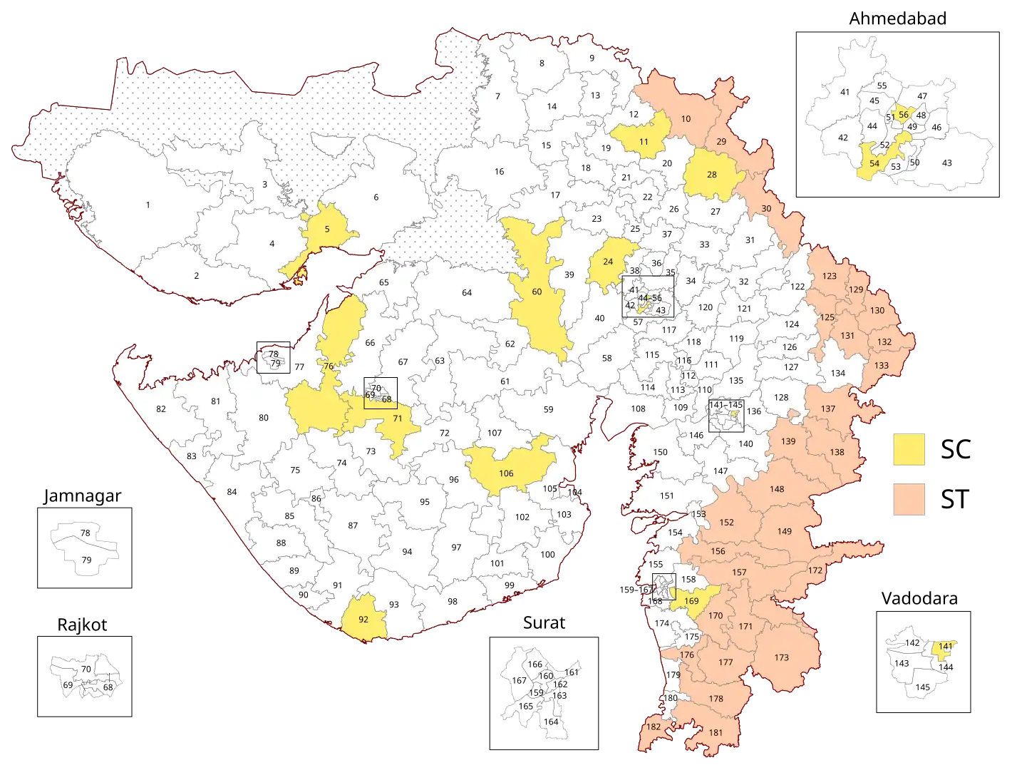 | 40 | Sanand | 142750 | 134464 | 5 | 277219 | 243,471 | Gandhinagar | ||