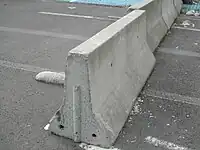 | - | jersey_barrier | A barrier made of heavy prefabricated blocks - often made out of concrete, but sometimes plastic ones filled with sand or water. | established tag | |||