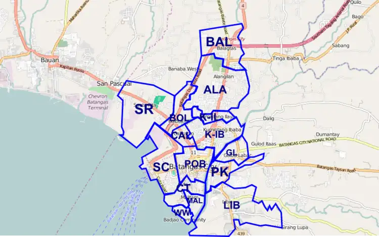 | Alangilan | Road network mostly complete. Boundary relation added. Needs more land use, buildings, and POI's. | |