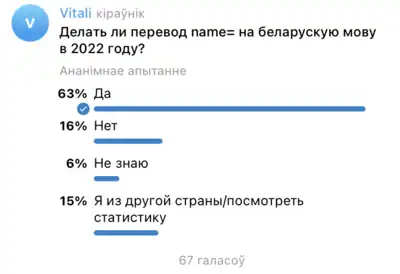 Часам асобныя ўдзельнікі мянялі name на беларускую, што адкатывалася.