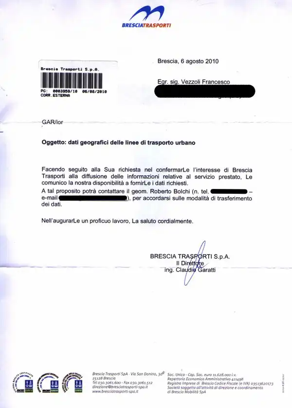 Dopo aver inviato la richiesta dei dati che si trova qui: Lettera Richiesta Ecco l'autorizzazione per l'uso dei dati: