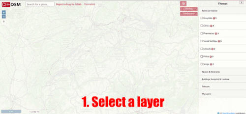 CH-OSM is a GeoDataSolutions project, which offers services related to thematic data from OpenStreetMap. Currently these services are provided at the scale of Switzerland and Grand Genève metropolitan area. The data of the different services are updated daily.