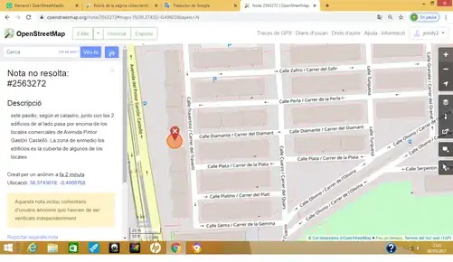 Una nota aportada per un visitant anònim, la qual dóna detalls que permeten a un usuari experimentat de l'OSM realitzar les millores al mapa.