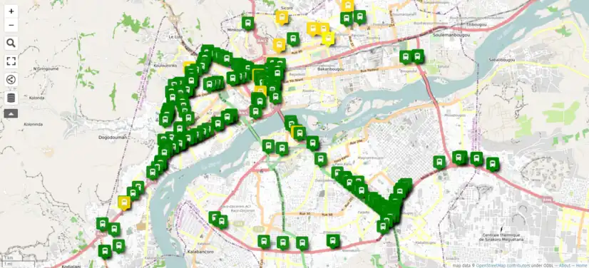 Bamako est une ville très grande par sa superficie et sa population. Elle est desservie par plusieurs moyens de transports en commun tels les mini-cars appelés “SOTRAMA” et “Taxis”. Cette domination par ces deux moyens de transports en communs est réelle mais mal réglementée. Dans ce secteur, il y a des lignes reconnues officiellement par les autorités routières et celles qui sont tolérées. Pour le bon fonctionnement du secteur, la communauté OpenStreetMapMali conformément à sa vocation de cartographier tout le Mali et Billet Express procèdent depuis Octobbre à la collecte des informations sur les lignes et Arrêts de ces Sotrama qui desservent la capitale afin de permettre à la population Bamakoise de connaître l’essentiel des lignes qu’elle emprunte.