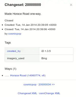 - {{Changeset}} - Wiki template (Adds the changeset id and links to changeset viewers for this particular changeset); Example: 158665155