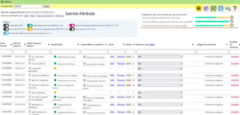 Pifomètre: Page d'Interconnexion FANTOIR-OSM pour Minimiser l'Énorme Tas de Rues Égarées