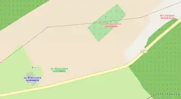 - La voie possède un nom différent (ex : rue des Lilas) du projet immobilier (ex : Lotissement des Fleurs) et il y a sur place un panneau contenant le nom du projet. Voir l'exemple du lotissement Les Sables. Dans ce cas, il faut rajouter un point