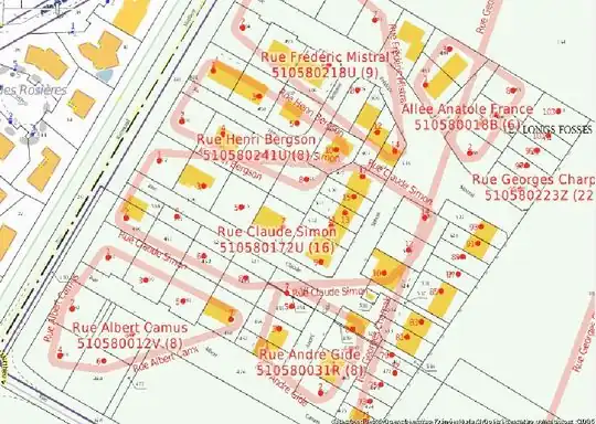 Par conséquent, la tâche la plus utile dans un premier temps est l'éradication des points rouges du rendu BANO, c'est-à-dire le rapprochement des données dans les cas où la voirie de la source (le plus souvent le cadastre) ne correspond pas à celle d'OpenStreetMap. Disposer de la voirie comme clé commune est le préalable indispensable à la conflation des sources et donc à l'unification des adresses dans une base nationale.