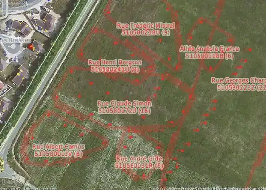 - Cas le plus simple : la voie a le même nom que le projet immobilier (voir le lotissement Domaine du Grand Chemin par exemple). Dans ce cas il n'y a rien à faire, le rapprochement sera fait comme pour une voie standard.