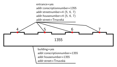 Česká a Slovenská republika používají poměrně unikátní systém číslování domů, pro který lze stěží použít jednu značku addr:housenumber=* jako ve většině ostatních států.