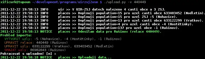 5. Porovná výsledná data s originálními, vypíše změny a zeptá se zda pokračovat s uploadem.