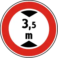 Není zde žádná dopravní značka vyznačující zákonné omezení, ale reálné omezení výšky je nižší než obecný limit dané země. Tato hodnota se hlavně používá u soukromých průjezdů pod budovami, kde dopravní značka není zákonem vyžadována, nebo, přestože vyžadována je, chybí. | |