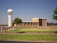 Stevensonově mřížce(en), která je na leteckém snímku viditelná jako velká bílá skvrna. Není nutné, a je často kontraproduktivní, označit každý měřicí přístroj jako samostatnou monitorovací stanici.
