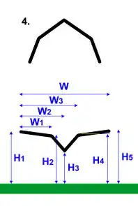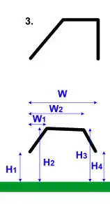 Parameters W, H1, H2 W, W1, H1, H2, H3 W, W1,W2, H1, H2, H3, H4 W, W1,W2,W3, H1, H2, H3, H4, H5 W, H1, H2, R