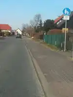 Getrennter Fuß- und benutzungspflichtiger Radweg Der Geh- und Radweg ist baulich nicht durch einen Grünstreifen, Graben, Büsche, usw. von der Fahrbahn abgesetzt. Der Fußweg wird durch weitere Tags am highway beschrieben. |