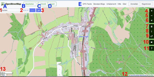 Dies ist eine Bedienungsanleitung für die OpenStreetMap-Karte.