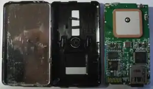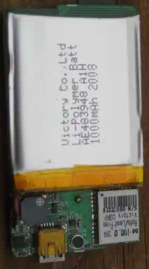Der Logger ist mit einem 1000mAh Lithium-Polymer Akku ausgestattet, der nicht getauscht werden kann. Die GPS-Antenne befindet sich im oberen Teil des Gehäuses, unter dem "Columbus"-Schriftzug.