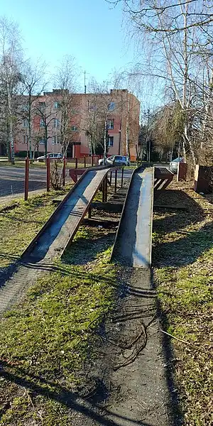 ![]() gering abgesetzter straßenbegleitender Einrichtungsradweg, der an einen Gehweg grenzt (Zeichen 241). |
