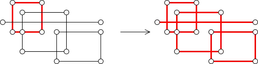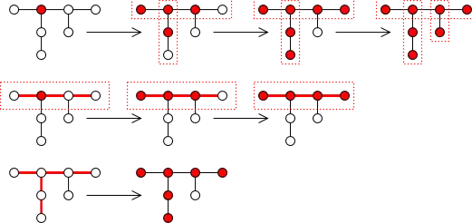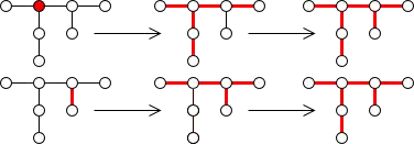 Werden einige Wege oder Knoten selektiert, dann werden die angrenzenden Wege rekursiv dazu selektiert (mit dem Ergebnis, dass alle verbundenen Wege nun selektiert sind).