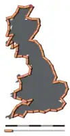 geschlossene Linie (Polygon) gezeichnet und umschliesst eine Landfläche.