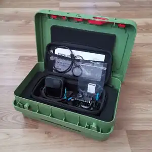 - Alle unsere Kameras sind Modelle des Typs GoPro Max. Sie hat sich für unsere Zwecke bewährt, da sie gute, georeferenzierte Serienaufnahmen zu einem akzeptablen Preis ermöglicht. Der im Jahr 2025 erschienene Nachfolger GoPro Max 2 bietet unserer Einschätzung nach für unsere Zwecke kaum Vorteile gegenüber dem Vorgänger, daher wird es zunächst auch dabei bleiben. Hier und da erscheinen neue, vielversprechende Modelle; solange sich jedoch kein Modell mit deutlichen Vorteilen bewährt hat, versuchen wir unseren "Fuhrpark" aus pragmatischen Gründen möglichst einheitlich zu halten. Das betrifft auch das Zubehör, wo wir derzeit nur die nötigsten Dinge einheitlich für alle Kamera-Sets vorhalten können.