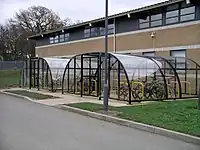 Ein Schuppen, in dem mehrere Fahrräder abgestellt werden können. Im Inneren können sich einzelne Fahrradständer befinden. |