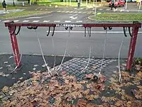 A stand which features two chains and the ability to lock the bike from the frame. Manufactured by a Finnish company Turvatec[1], it's a less common sight elsewhere. |