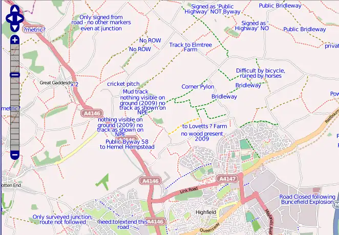 comment=*– Beschreibung von Änderungssätzendescription=*– Beschreibender Text, der ggf. auch gerendert wirdfixme=*– Beschreibung eines möglichen Fehlers in der Karte oder Hinweis auf weitere nötige Arbeitsschritte.- Nicht zu verwechseln mit Hinweis/Fehler melden (Notes) – dies ist eine Funktion auf der OpenStreetMap-Website (www.osm.org), mit der Besucher auf einfache Weise auf einen Fehler in den Kartendaten hinweisen können. Diese Funktion ist auch in vielen Editoren implementiert.