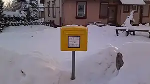 Eine geschlossene Box – kleiner als eine freistehende Box –, die normalerweise an einer Stange/einem Pfosten, auf einem schmalen Sockel, an einem Licht-/Telegraphen-/Strommast oder an einer Wand befestigt ist. |