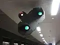 Hat immer ein gelbes, aber niemals ein rotes Licht. Mit rotem Licht ist es ein Ks-Kombinationssignal ( Wenn das grüne Licht blinkt ist auch ein Zs3v-Signal vorhanden, das eine Geschwindigkeit anzeigt ( Bei verkürztem Bremswegabstand leuchtet oben links ein weißes Zusatzlicht ( Im Beispiel ist ein Geschwindigkeitsvorsignal | |