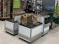Manche Geschäfte bieten Selbstbedienungskassen an, wo Kunden ihre Waren selbst einscannen und dann bezahlen können, ohne das Beschäftigte der Einrichtung involviert sind. Dieses Merkmal sollte nicht in Verbindung mit Verkaufsautomaten verwendet werden.