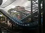 Nutzer rutschen erst steil herunter und anschließend in einen schrägen Looping herein.