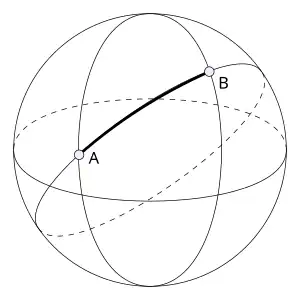 Der kürzeste Weg auf der Kugeloberfläche zwischen Punkt A und B ist eine Orthodrome