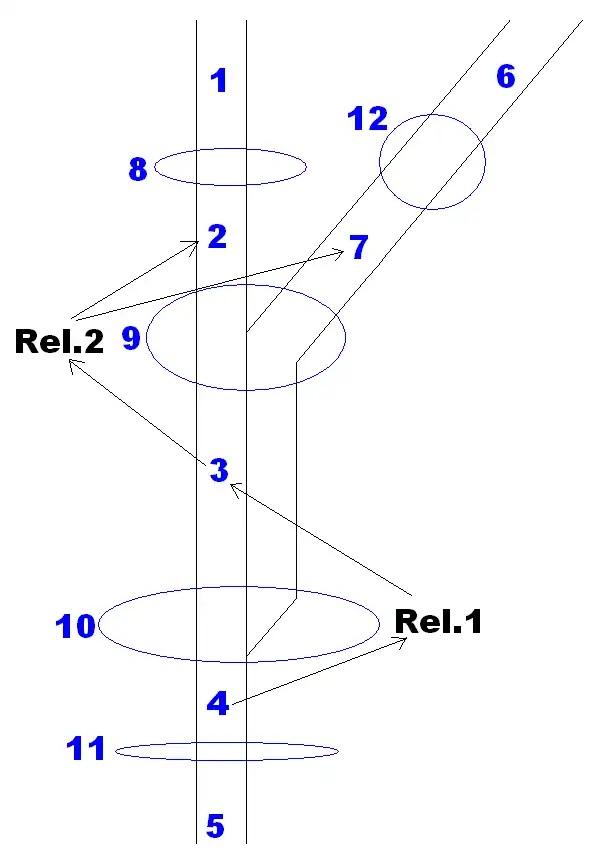 Wenn sich an Nodes die Anzahl der Spuren ändert, gibt es eine Relation welche beschreibt wo die neue Spur hinzugefügt wird. Wenn sich an Nodes der Weg teilt gibt es eine Relation welche beschreibt welche Spuren wie zu befahren sind und wie die Anzeige zu erfolgen hat.
