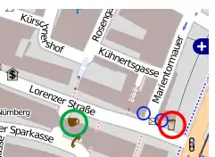 - Neue Hotels oder Gaststätten kannst Du über "OpenStreetBugs" melden, sie werden dann von OpenStreetMap-Menschen eingetragen. Dazu brauchen sie eine genaue Beschreibung mit Name, Adresse mit Strasse, Nr, PLZ und Ort, Typ (Restaurant/Cafe/Fast-Food/Bar/Pub). Und wenn möglich Art der Küche (italienisch, Thai, etc), Tel-Nr, Website, W-Lan, Öffnungszeiten, Bemerkungen.