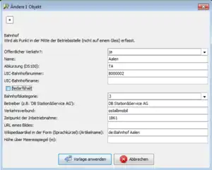 Ganz bequem vom PC lassen sich auch noch Details zu vielen Betriebsstellen (beispielsweise Bahnhöfen und Haltepunkten) ergänzen. Beispielsweise fehlen bei vielen Betriebsstellen noch die Bahnhofskategorien oder Wikipedia-Links.