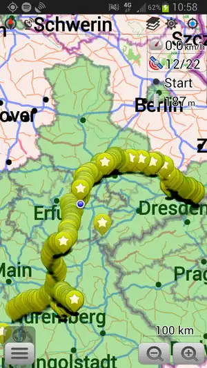 Erfassung eines Punktes bei Vorbeifahrt durch Antippen der Karte -