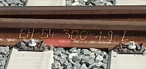 Schwieriger ist die Ermittlung der auf einer Weiche im abzweigenden Strang zulässigen Geschwindigkeit. Bei frisch erneuerten Weichen kann es sich lohnen, einmal auf Anschriften auf den zugehörigen Schienen zu schauen. Mitunter finden sich dort „verräterische“ Hinweise auf die Form einfacher Weichen. So lässt sich aus dem Kürzel „300-1ː9“ beispielsweise schließen, dass es sich um eine (standardisierte) einfache Weiche mit einem Abzweigradius von 300 Metern handelt, die laut Tabelle mit 50 km/h abzweigend befahren werden kann.