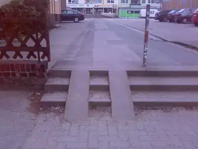 - Kinderwagen / Kinderkarre (geht auf kurzen Treppen mit 2 parallelen Schrägen) Es hat sich etabliert:
