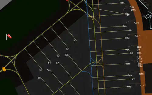 Zeichen einen Weg von der jeweiligen Rollbahn und zur Position wo das Vorderrad zum Stehen kommen soll und füge aeroway=parking_position hinzu.