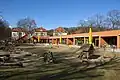 gezeichnet und entsprechend des Gebäudetyps mit building=*getaggt werden. Für entsprechende Zweckbauten sindbuilding=schooloderbuilding=kindergartengebräuchlich, umgewidmete Gebäude behalten den ursprünglichen Typ. leisure=playground- Der Außenspielplatz kann auf dem Grundstück als Punkt