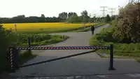 Eine Drehschranke ähnelt einer normalen Schranke, dreht sich jedoch seitlich, um sich zu öffnen. Sie besteht in der Regel aus einer Metall- oder Holzstange und soll die Durchfahrt von Autos verhindern, kann aber normalerweise von Fußgängern und Radfahrern passiert werden.